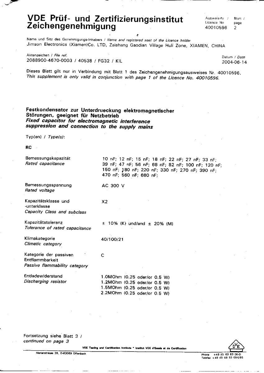 IEC 384-14 (2nd Edition,1993) UL1414,UL1283,GB/T 14472-1998,EN132400