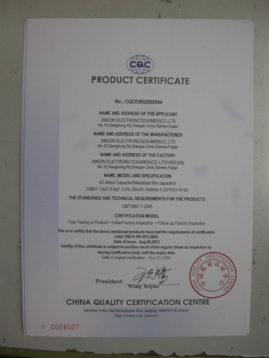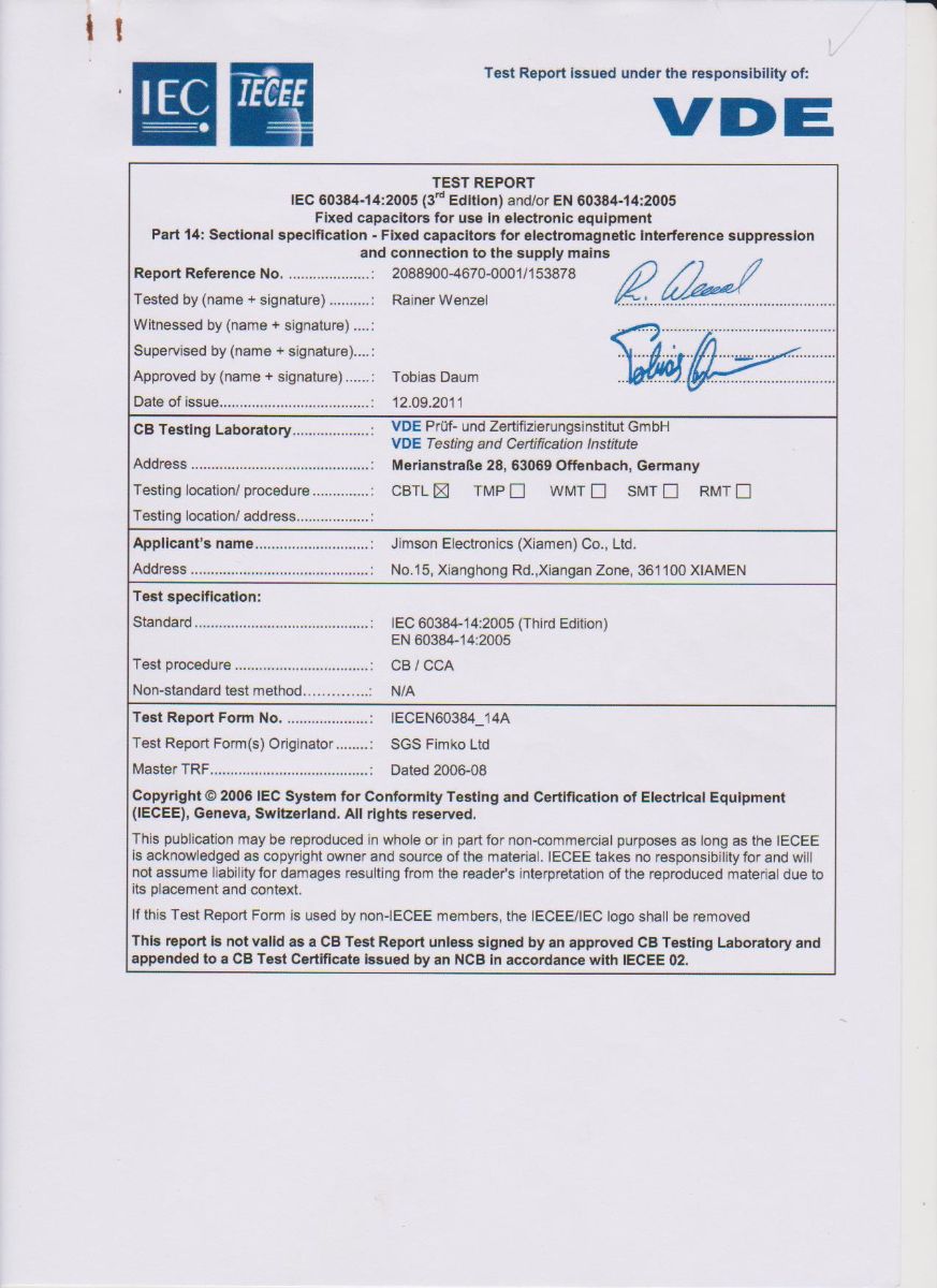 IEC 384-14 (2nd Edition,1993) UL1414,UL1283,GB/T 14472-1998,EN132400